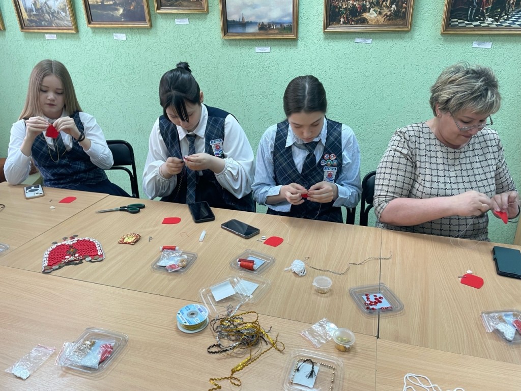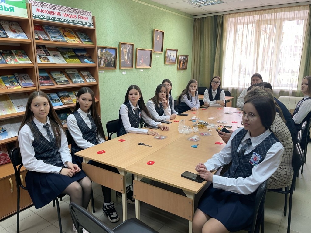 Мастер-класс "Сэлтэр: секреты башкирского нагрудника" В преддверии Дня национального костюма народов Республики Башкортостан в модельной библиотеке №31 состоялся мастер-класс для учениц 8-х классов школы №85. Под руководством сотрудников библиотеки девочки учились создавать брошь "Сэлтэр" — традиционный элемент башкирского наряда. В ходе мероприятия участники мероприятия познакомились с разнообразием названий нагрудников, которые встречаются в районах Республики Башкортостан. На юго-востоке - сэлтэр, в восточном Зауралье - яга, в Дёмском районе – сакал, и на севере Башкортостана - муйынса. Были продемонстрированы нагрудные украшения других народов России: русский ожерелок, хакасское пого, татарский изю,бурятские и грузинские изделия. Девочки заметили, что все эти украшения схожи между собой — они закрывают грудь и шею, выполняя не только декоративную, но и обереговую функцию. На мастер-классе участницы сшили брошку-сэлтэр: на фетровую основу сначала нашили оторочку из тесьмы, а затем размещали на ней композицию из миниатюрных монет, раковин каури и бисера. Библиотекари отметили, что изделия ручной работы уникальны, и в этом их особая ценность. Пришлось потрудиться, но результат того стоил – у каждой девочки получилась своя неповторимая брошь, отражающая характер и эстетические ценности рукодельницы. |